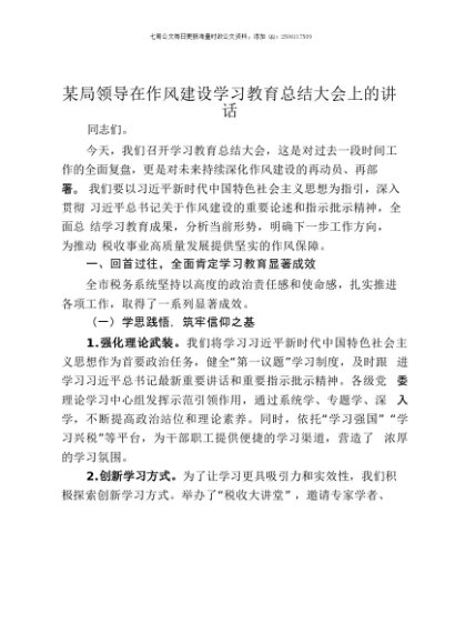 / 【七哥公文】2025年:某局领导在作风建设学习教育总结大会上的讲话+更多免费公文+VX:QiGeGongWen2024