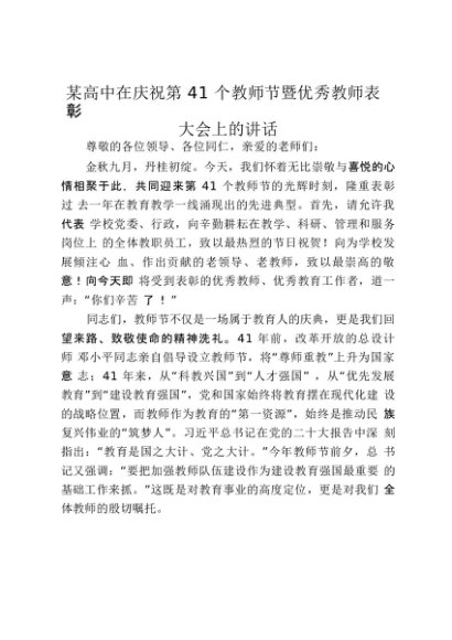 【七哥公文】2025年:某高中在庆祝第41个教师节暨优秀教师表彰大会上的讲话_20250917_192236+更多免费公文+VX:QiGeGongWen2024