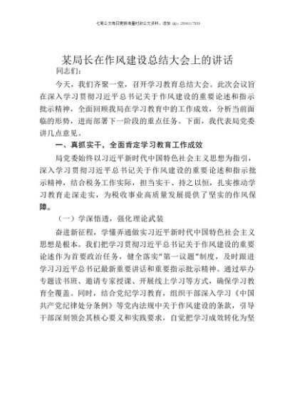 / 【七哥公文】2025年:某局长在作风建设总结大会上的讲话+更多免费公文+VX:QiGeGongWen2024