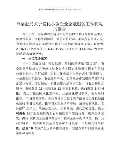 / 【七哥公文】2025年:市金融局关于强化小微企业金融服务工作情况的报告+更多免费公文+VX:QiGeGongWen2024