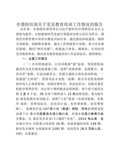 【七哥公文】2025年:市委组织部关于党员教育培训工作情况的报告_20250917_192235+更多免费公文+VX:QiGeGongWen2024