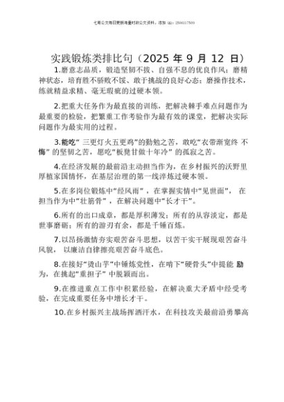 / 【七哥公文】2025年:实践锻炼类排比句(2025年9月12日)+更多免费公文+VX:QiGeGongWen2024