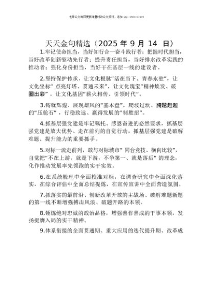 / 【七哥公文】2025年:天天金句精选(2025年9月14日)+更多免费公文+VX:QiGeGongWen2024
