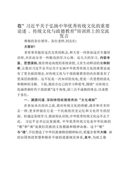 【七哥公文】2025年:在“习近平关于弘扬中华优秀传统文化的重要论述、传统文化与政德教育”培训班上的交流发言_20250917_192235+更多免费公文+VX:QiGeGongWen2024