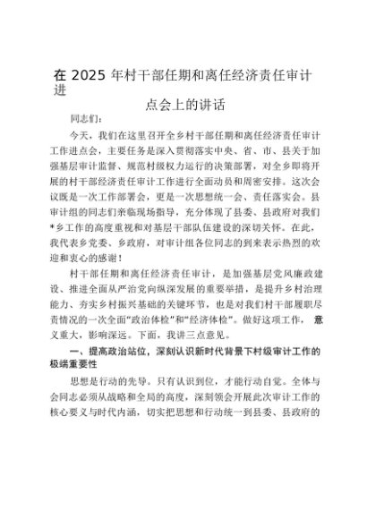【七哥公文】2025年:在2025年村干部任期和离任经济责任审计进点会上的讲话_20250917_192235+更多免费公文+VX:QiGeGongWen2024