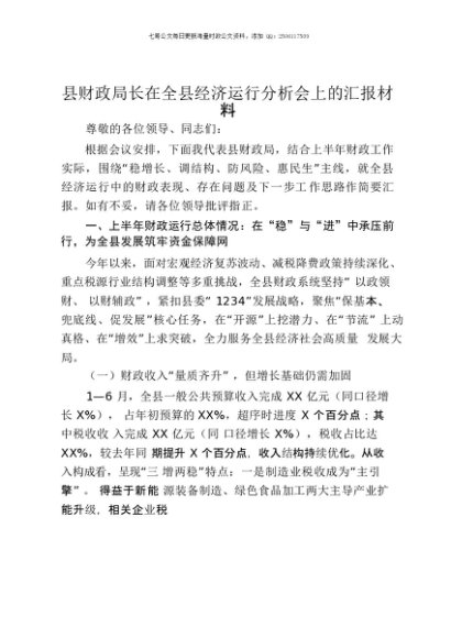 / 【七哥公文】2025年:县财政局长在全县经济运行分析会上的汇报材料+更多免费公文+VX:QiGeGongWen2024
