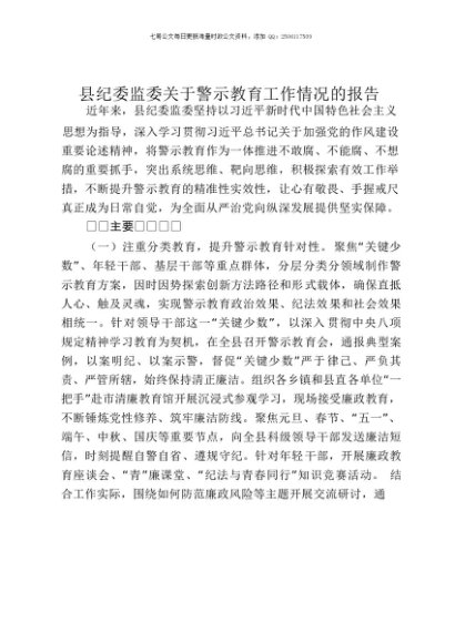 / 【七哥公文】2025年:县纪委监委关于警示教育工作情况的报告+更多免费公文+VX:QiGeGongWen2024