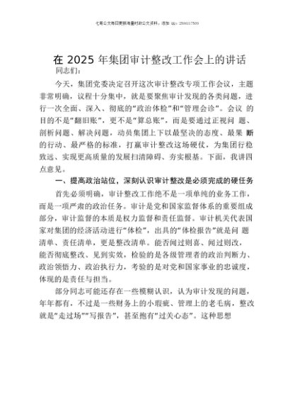 / 【七哥公文】2025年:在2025年集团审计整改工作会上的讲话+更多免费公文+VX:QiGeGongWen2024