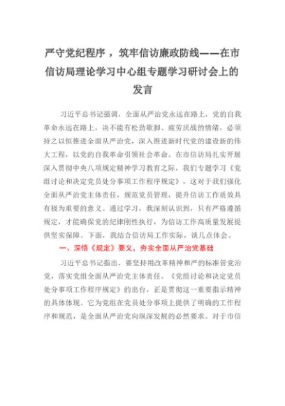 【七哥公文】2025年:严守党纪程序,筑牢信访廉政防线——在市信访局理论学习中心组专题学习研讨会上的发言_20250917_192234+更多免费公文+VX:QiGeGongWen2024