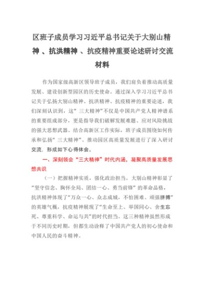 【七哥公文】2025年:区班子成员学习习近平总书记关于大别山精神、抗洪精神、抗疫精神重要论述研讨交流发言材料_20250917_192235+更多免费公文+VX:QiGeGongWen2024