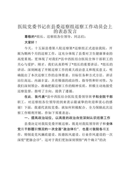 【七哥公文】2025年:医院党委书记在县委巡察组巡察工作动员会上的表态发言_20250917_192235+更多免费公文+VX:QiGeGongWen2024