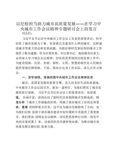 【七哥公文】2025年:以纪检担当助力城市高质量发展——在学习中央城市工作会议精神专题研讨会上的发言_20250917_192234+更多免费公文+VX:QiGeGongWen2024