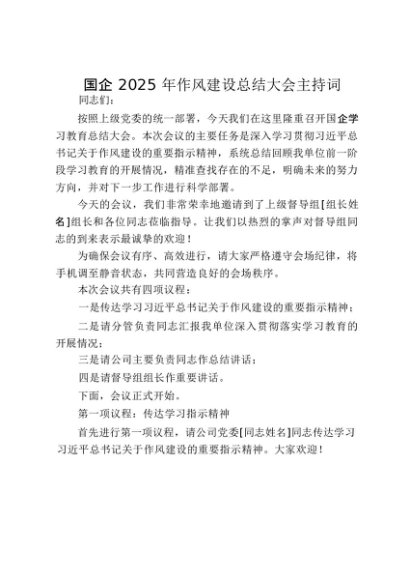 【七哥公文】2025年:国企2025年作风建设总结大会主持词_20250917_192239+更多免费公文+VX:QiGeGongWen2024
