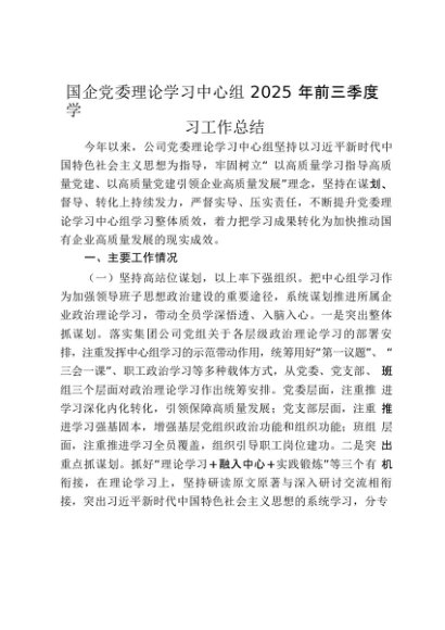 【七哥公文】2025年:国企党委理论学习中心组2025年前三季度学习工作总结_20250917_192239+更多免费公文+VX:QiGeGongWen2024