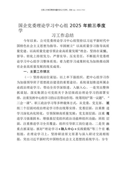 【七哥公文】2025年:国企党委理论学习中心组2025年前三季度学习工作总结+更多免费公文+VX:QiGeGongWen2024