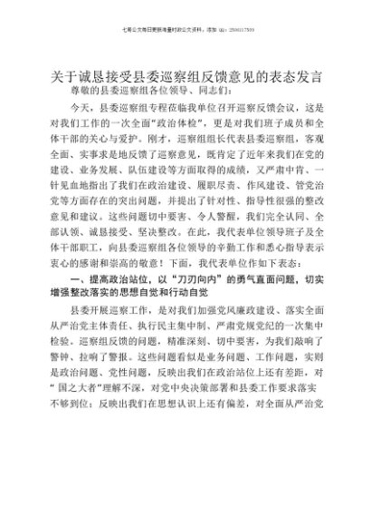 / 【七哥公文】2025年:关于诚恳接受县委巡察组反馈意见的表态发言+更多免费公文+VX:QiGeGongWen2024
