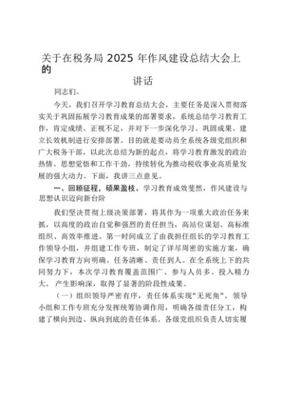【七哥公文】2025年:关于在税务局2025年作风建设总结大会上的讲话_20250917_192239+更多免费公文+VX:QiGeGongWen2024