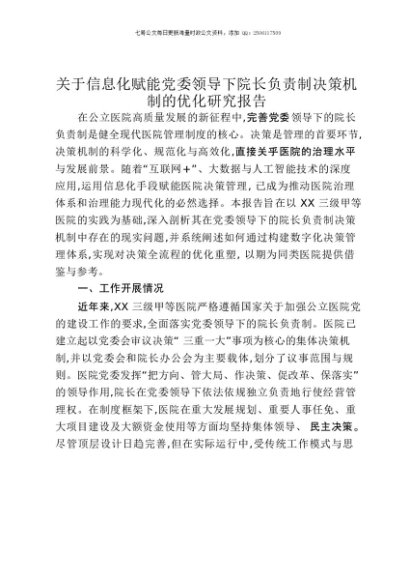 【七哥公文】2025年:关于信息化赋能党委领导下院长负责制决策机制的优化研究报告+更多免费公文+VX:QiGeGongWen2024