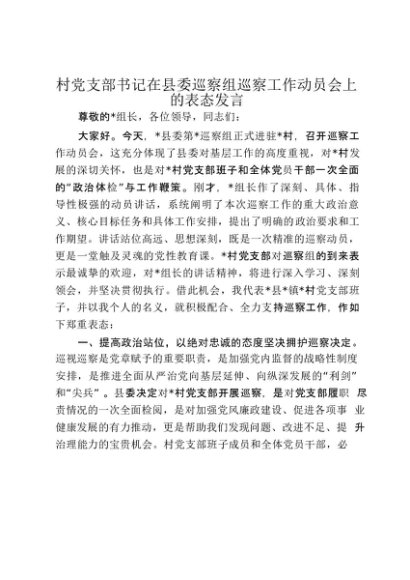 【七哥公文】2025年:村党支部书记在县委巡察组巡察工作动员会上的表态发言_20250917_192239+更多免费公文+VX:QiGeGongWen2024