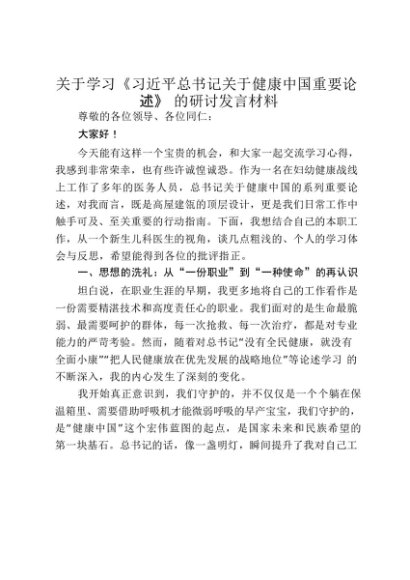 【七哥公文】2025年:关于学习《习近平总书记关于健康中国重要论述》的研讨发言材料_20250917_192239+更多免费公文+VX:QiGeGongWen2024