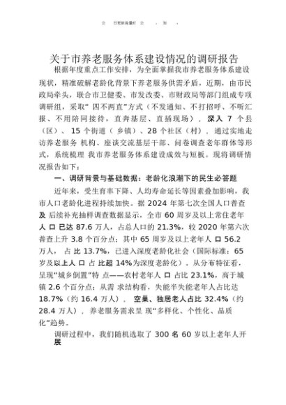 / 【七哥公文】2025年:关于市养老服务体系建设情况的调研报告+更多免费公文+VX:QiGeGongWen2024