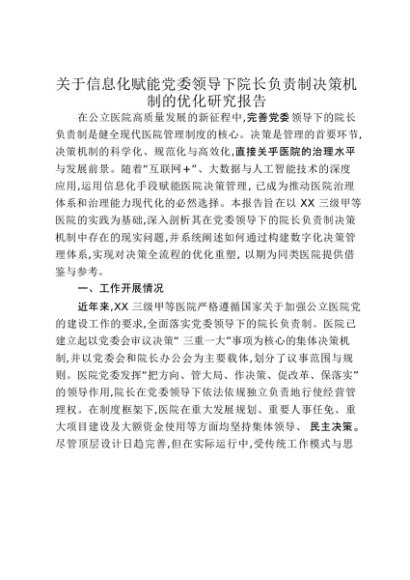 【七哥公文】2025年:关于信息化赋能党委领导下院长负责制决策机制的优化研究报告_20250917_192238+更多免费公文+VX:QiGeGongWen2024