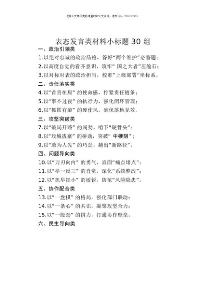 / 【七哥公文】2025年:表态发言类材料小标题30组+更多免费公文+VX:QiGeGongWen2024