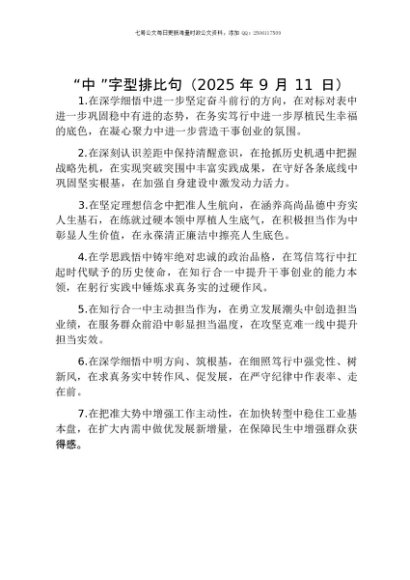 【七哥公文】2025年:“中”字型排比句(2025年9月11日)+更多免费公文+VX:QiGeGongWen2024