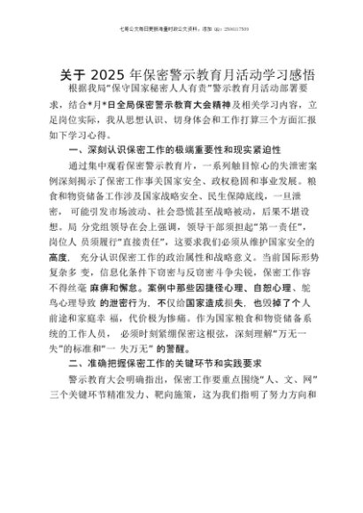 / 【七哥公文】2025年:关于2025年保密警示教育月活动学习感悟+更多免费公文+VX:QiGeGongWen2024