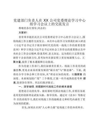 【七哥公文】2025年:党建部门负责人在XX公司党委理论学习中心组学习会议上的交流发言_20250917_192237+更多免费公文+VX:QiGeGongWen2024