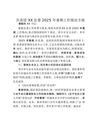 【七哥公文】2025年:共青团XX县委2025年暑期工作情况专报报告_20250917_192238+更多免费公文+VX:QiGeGongWen2024