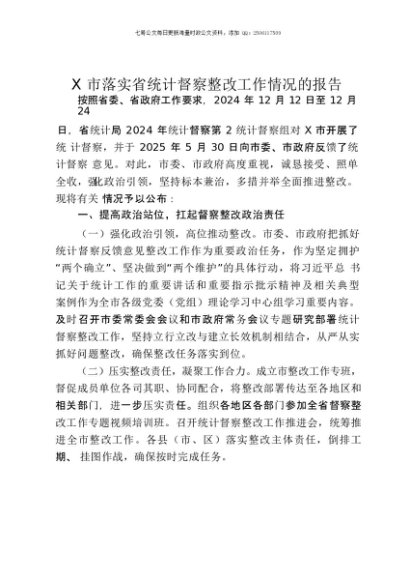 / 【七哥公文】2025年:X市落实省统计督察整改工作情况的报告+更多免费公文+VX:QiGeGongWen2024