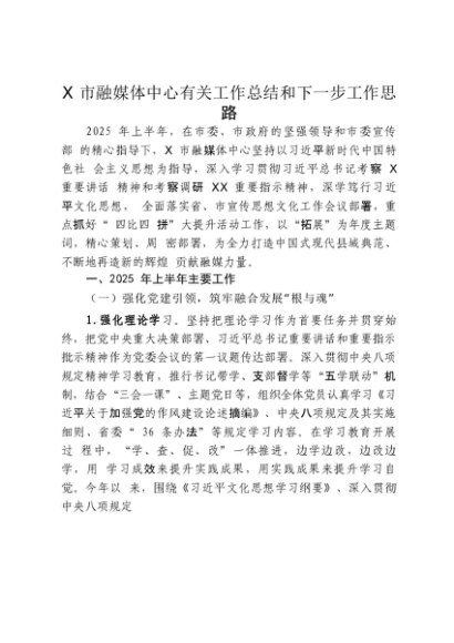 【七哥公文】2025年:X市融媒体中心有关工作总结和下一步工作思路_20250917_192237+更多免费公文+VX:QiGeGongWen2024
