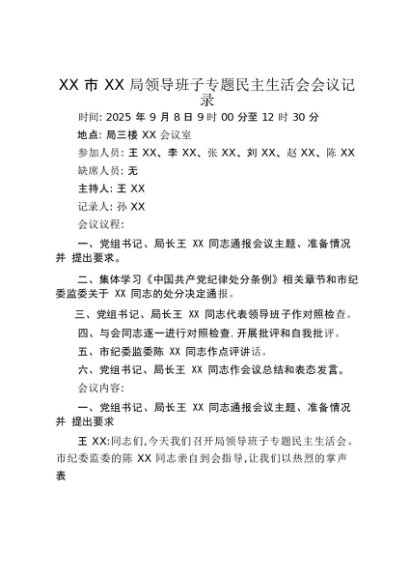 【七哥公文】2025年:XX市XX局领导班子专题民主生活会会议记录_20250917_192237+更多免费公文+VX:QiGeGongWen2024