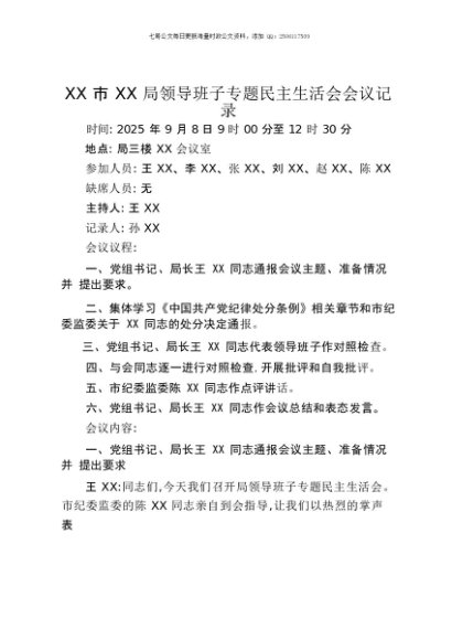 【七哥公文】2025年:XX市XX局领导班子专题民主生活会会议记录_20250917_192237+更多免费公文+VX:QiGeGongWen2024
