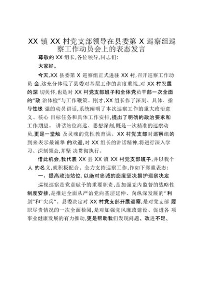 【七哥公文】2025年:XX镇XX村党支部领导在县委第X巡察组巡察工作动员会上的表态发言_20250917_192237+更多免费公文+VX:QiGeGongWen2024