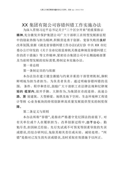 【七哥公文】2025年:XX集团有限公司容错纠错工作实施办法+更多免费公文+VX:QiGeGongWen2024