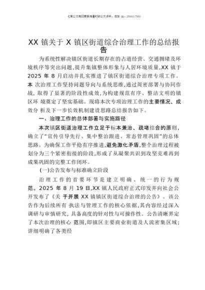 / 【七哥公文】2025年:XX镇关于X镇区街道综合治理工作的总结报告+更多免费公文+VX:QiGeGongWen2024