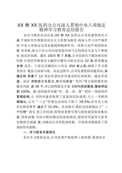 【七哥公文】2025年:XX市XX医药分公司深入贯彻中央八项规定精神学习教育总结报告_20250917_192237+更多免费公文+VX:QiGeGongWen2024
