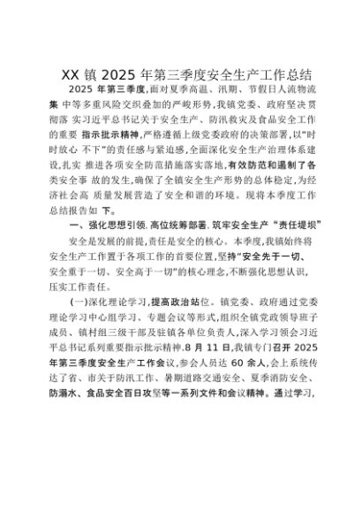 【七哥公文】2025年:XX镇2025年第三季度安全生产工作总结_20250917_192237+更多免费公文+VX:QiGeGongWen2024