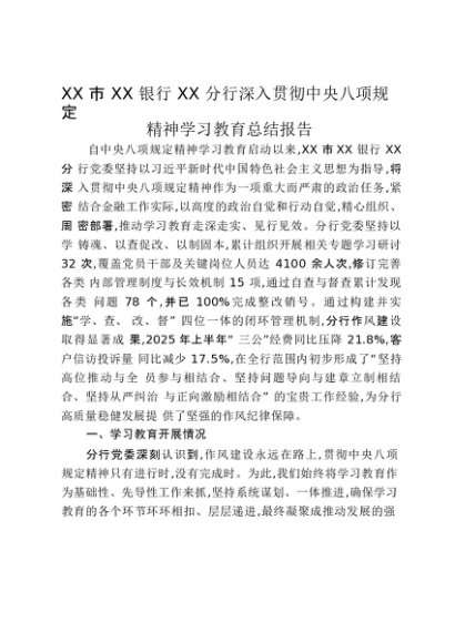 【七哥公文】2025年:XX市XX银行XX分行深入贯彻中央八项规定精神学习教育总结报告_20250917_192237+更多免费公文+VX:QiGeGongWen2024