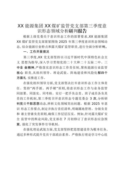 【七哥公文】2025年:XX能源集团XX煤矿监管党支部第三季度意识形态领域分析研判报告_20250917_192237+更多免费公文+VX:QiGeGongWen2024