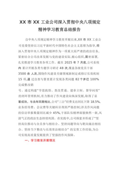 【七哥公文】2025年:XX市XX工业公司深入贯彻中央八项规定精神学习教育总结报告_20250917_192237+更多免费公文+VX:QiGeGongWen2024