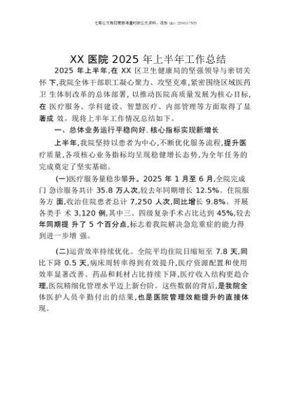 / 【七哥公文】2025年:XX医院2025年上半年工作总结+更多免费公文+VX:QiGeGongWen2024