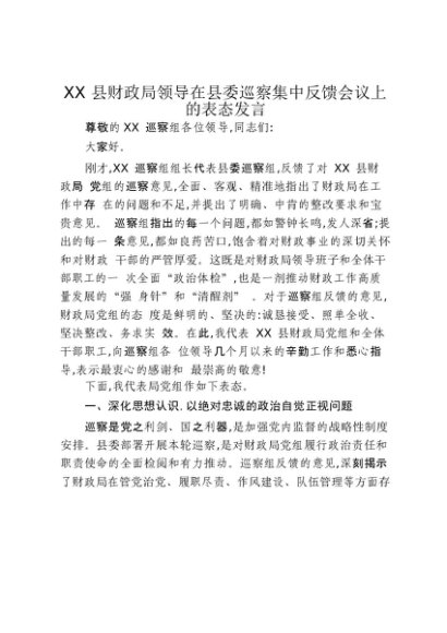 【七哥公文】2025年:XX县财政局领导在县委巡察集中反馈会议上的表态发言_20250917_192237+更多免费公文+VX:QiGeGongWen2024