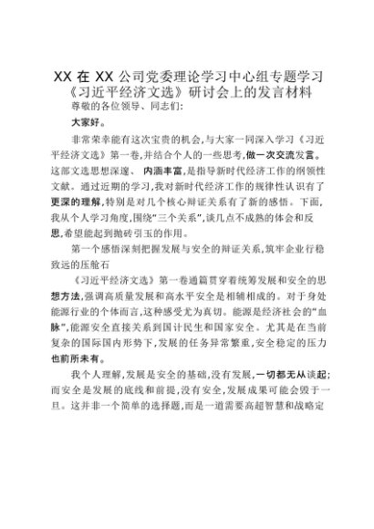 【七哥公文】2025年:XX在XX公司党委理论学习中心组专题学习《习近平经济文选》研讨会上的发言材料_20250917_192237+更多免费公文+VX:QiGeGongWen2024