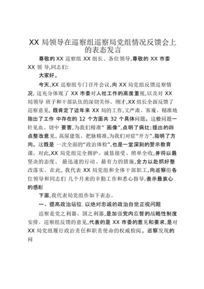 【七哥公文】2025年:XX局领导在巡察组巡察局党组情况反馈会上的表态发言_20250917_192237+更多免费公文+VX:QiGeGongWen2024