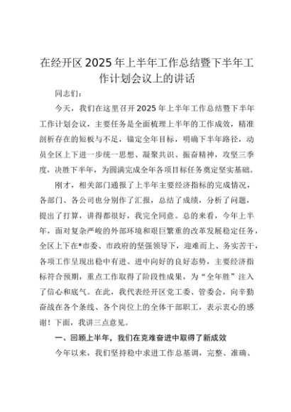 【七哥公文】2025年:在经开区2025年上半年工作总结暨下半年工作计划会议上的讲话(1)+更多免费公文+VX:QiGeGongWen2024