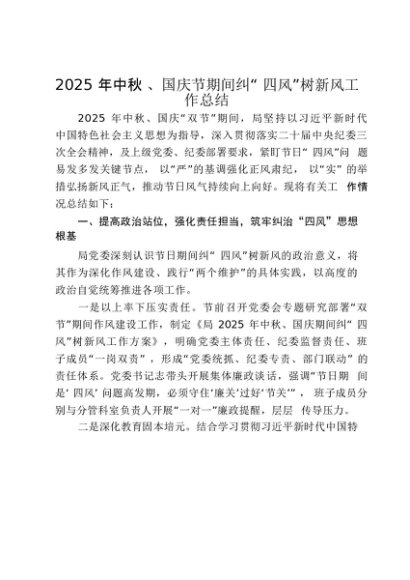【七哥公文】2025年:2025年中秋、国庆节期间纠“四风”树新风工作总结_20250917_192237+更多免费公文+VX:QiGeGongWen2024