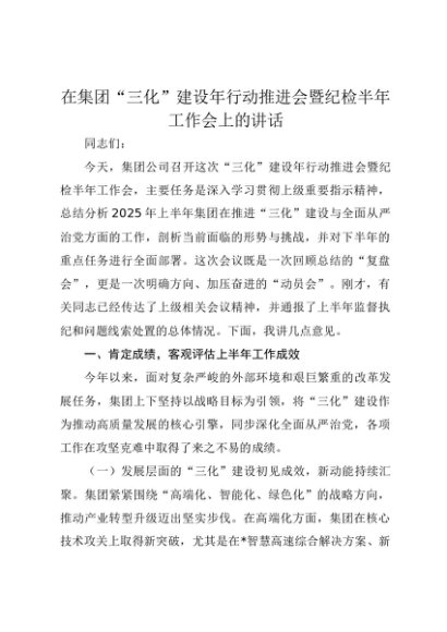 【七哥公文】2025年:在集团“三化”建设年行动推进会暨纪检半年工作会上的讲话+更多免费公文+VX:QiGeGongWen2024
